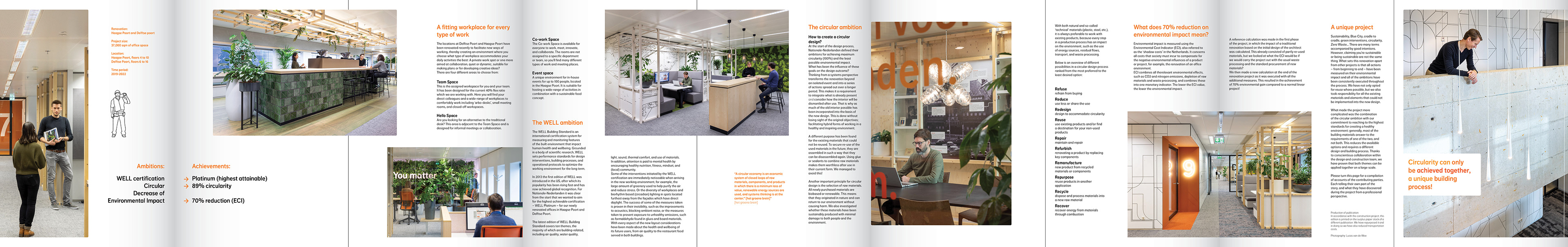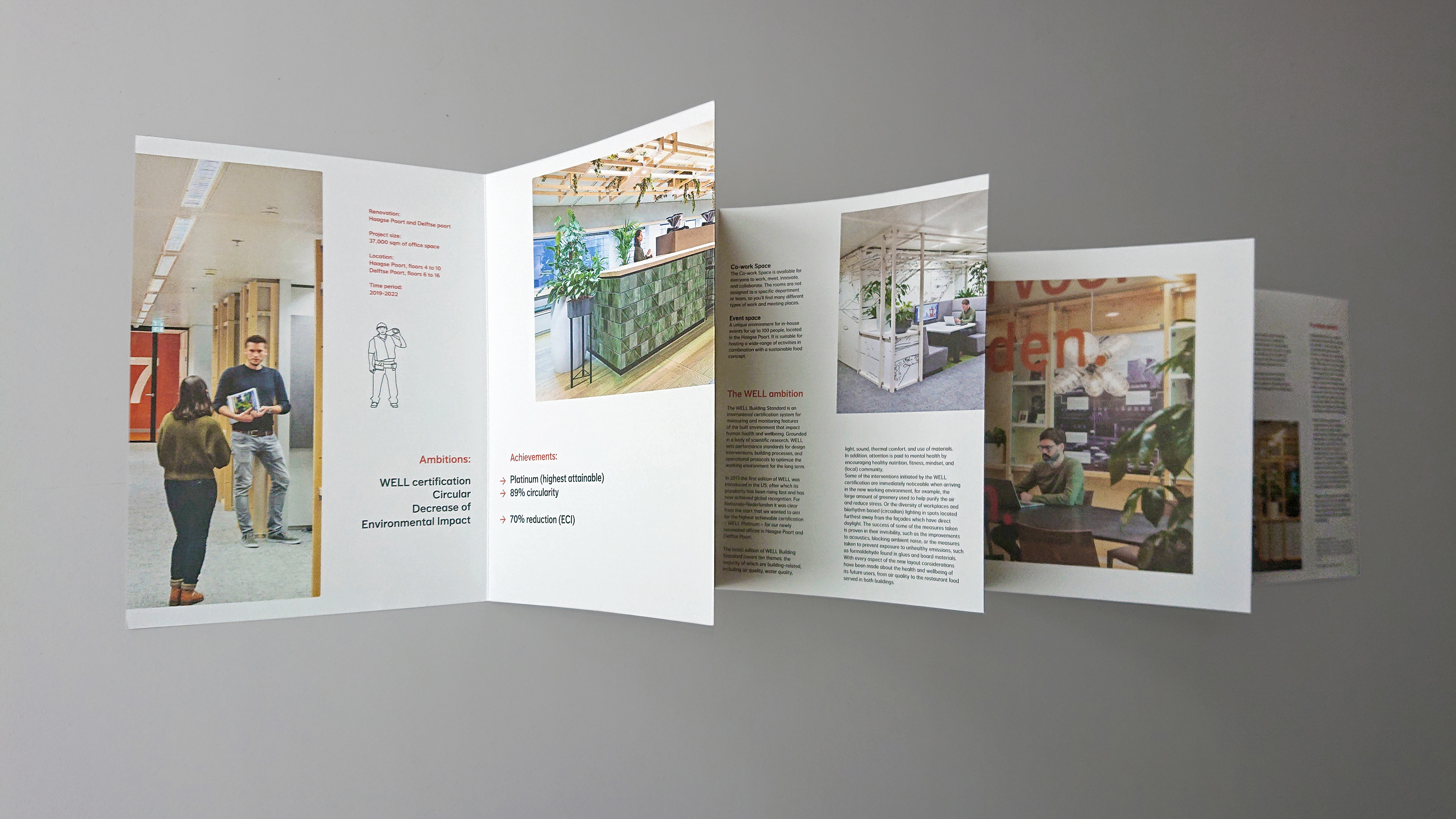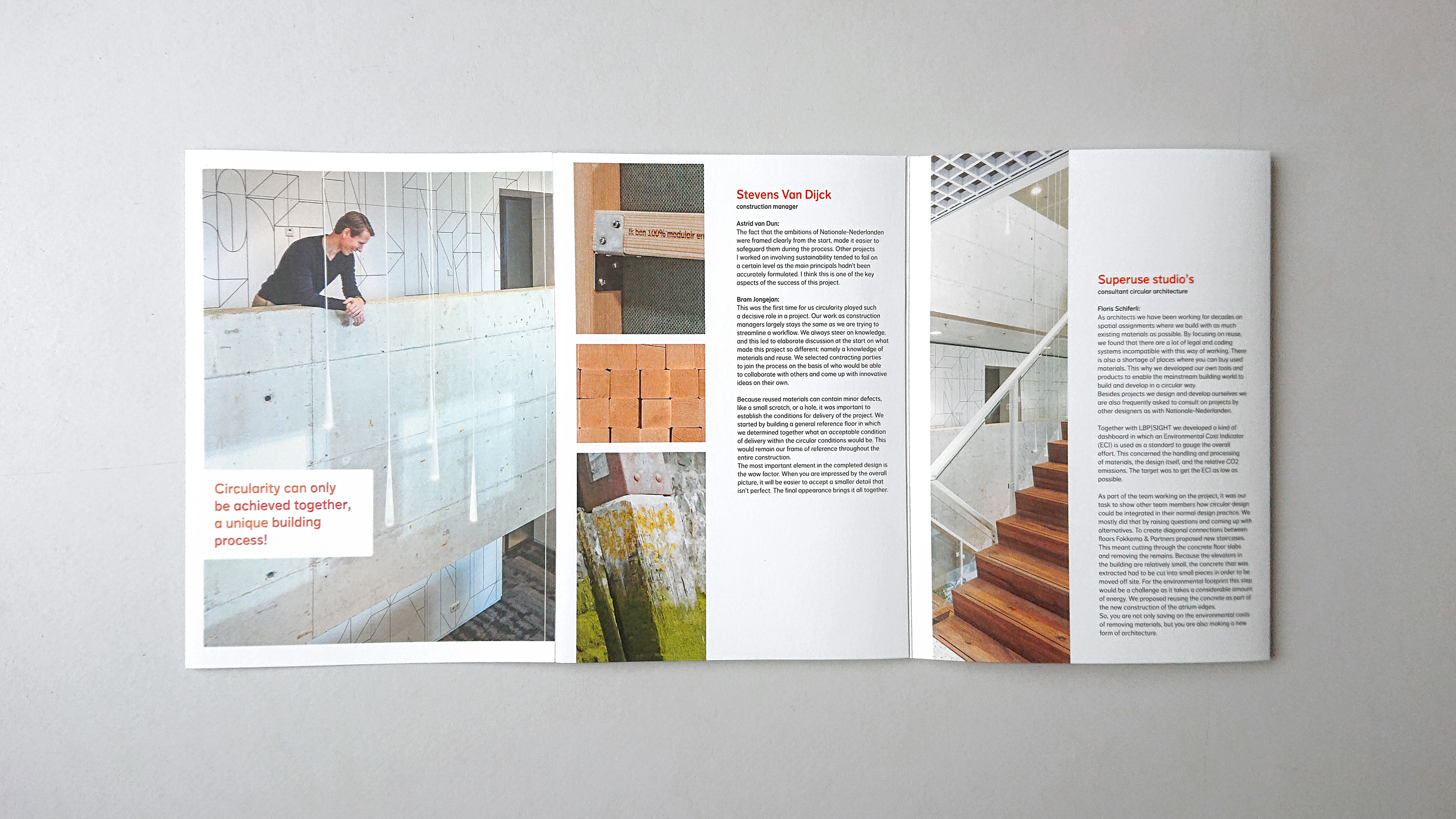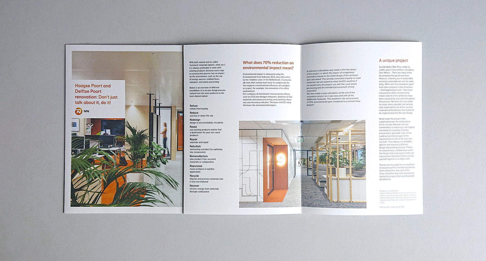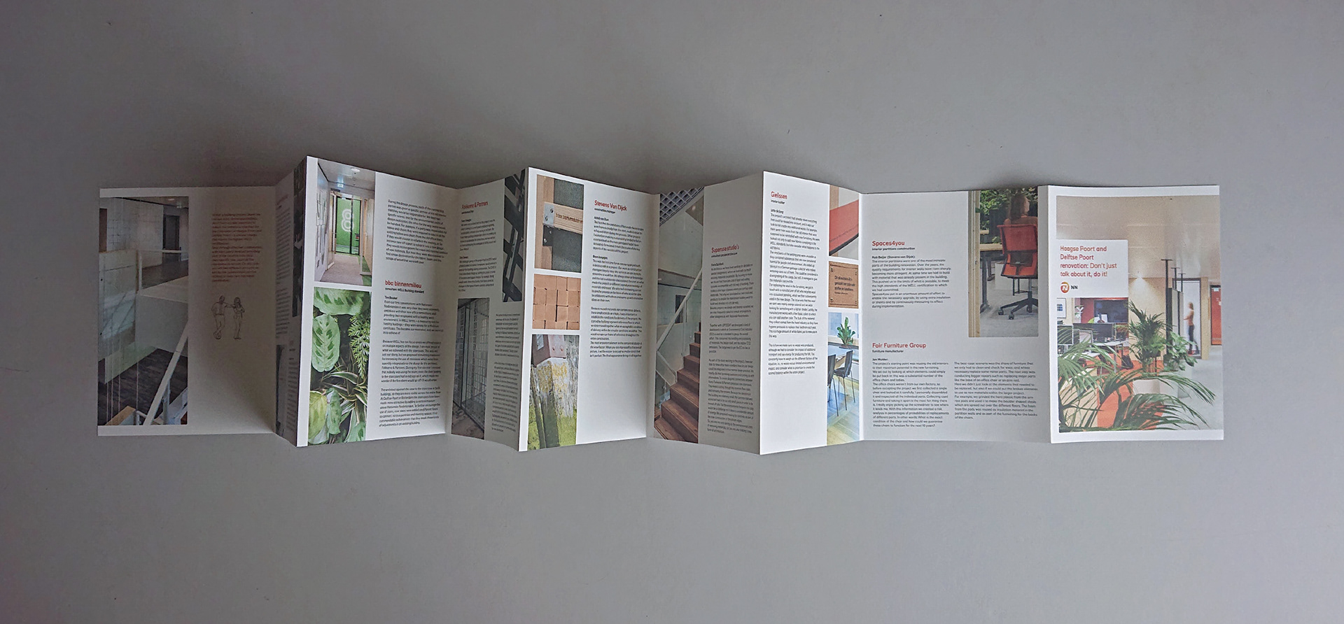 Fan folded brochure (162 * 25,5 cm), including 9 quotes from the interviews with the contributing parties.